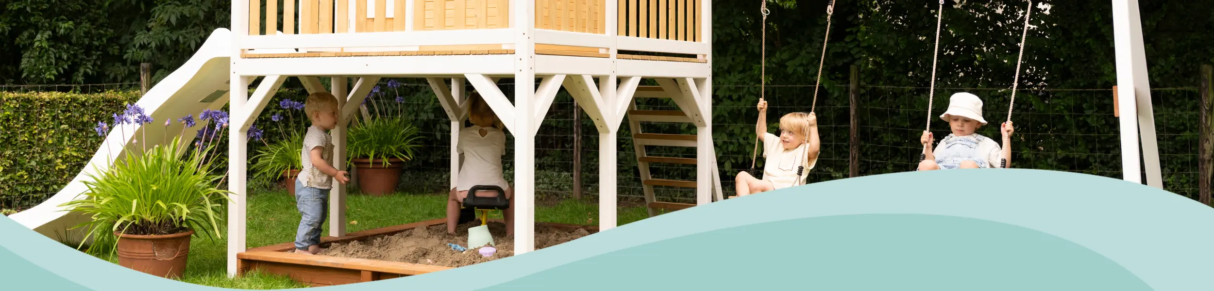 Een speelhuisje is een klassieker, en dat is niet voor niets. Het is een plek waar kinderen rollenspellen spelen: winkeltje, postkantoor, camping, geheime club. Veel kinderen komen er elke dag weer naar terug, omdat het voelt als “van hen”.